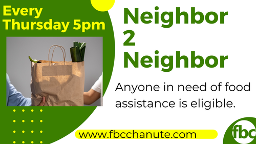 Neighbor2Neighbor is a food distribution available to any one who needs it. There are no requirements to receive assistance. Distribution is on Thursdays from 5-5:30pm.**